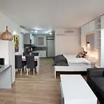 Obiekt posiada kuchnię i kuchenkę mikrofalową, czajnik elektryczny i lodówkę. Jedynie w ciągu 5 min pieszo znajduje się restauracja Klopa, serwująca dania kuchni europejskiej. Ten apartament leży prawie 5 min piechotą od najbliższego przystanku autobusowego Banka.